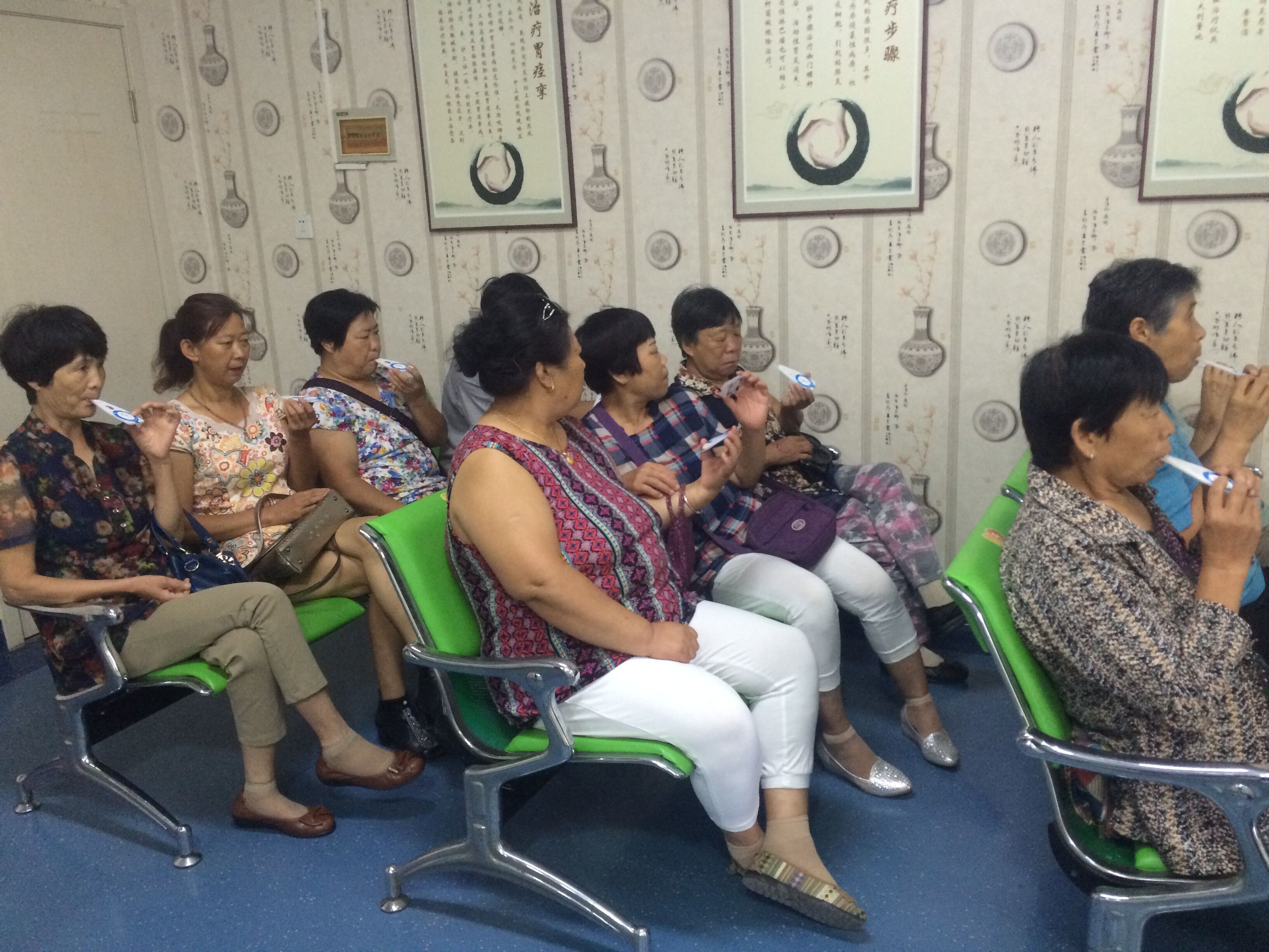 8月23日上午,10位来自莲池区南大园乡南刘各庄村的阿姨来到保定九洲胃肠病医院接受免费体检:查幽门螺旋杆菌(14C呼气检测仪)。她们是该院爱心公益服务的第五批贵宾。