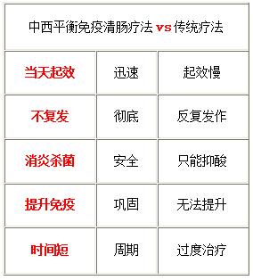 该疗法从“促使黏膜还原”角度出发,无需长期服药,改善血液循环和组织营养,活化组织细胞,促进胃肠道粘膜细胞的自然分裂更新来达成炎症的自愈,从而修复炎症病灶,对非炎症部分不存在过度治疗,对正常黏膜无损伤,有效提高胃肠部抗菌、抗炎、抗酸、抗癌的能力及整体免疫力。