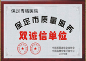 四、收费透明、合理,消费有保障。保定九洲胃肠病研究院收费严格按照保定市物价执行,真正使患者受益。并在医院大厅设立价格公示,患者能清晰明了的知道诊疗费用。狠抓医务人员的职业道德教育,完善医院管理体系,有效避免药品回扣、收受红包等。